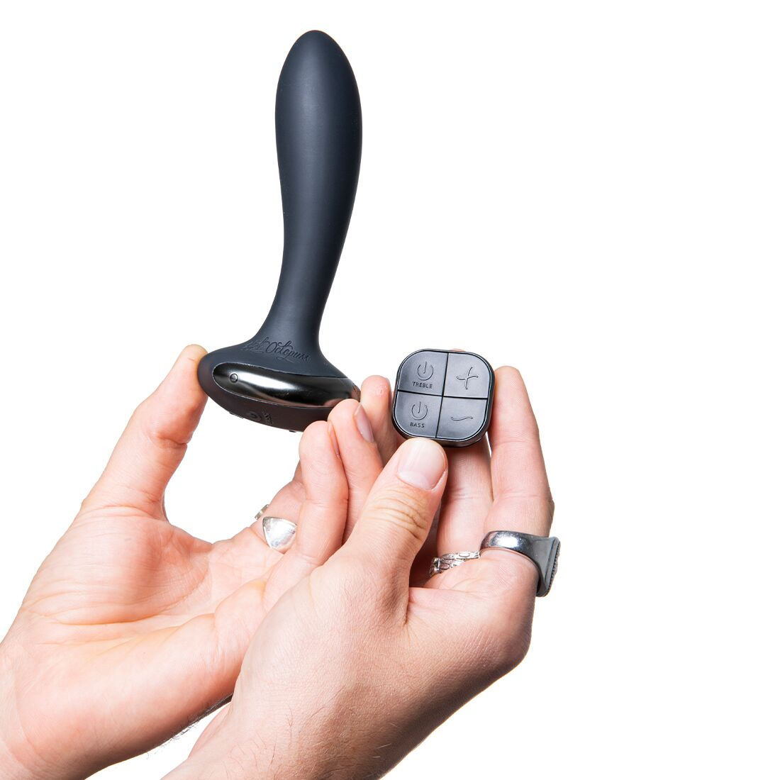 Нове слово у сфері анальної стимуляції! Пропонуємо купити анальну вібропробку Hot Octopus Plex with flex, яка працює за унікальною технологією Treble and Bass™. У пробці комбінуються два мотори: один — ближче до основи, вібрує на низьких частотах; другий — у кінчику, працює на високих частотах, стимулюючи простату, якщо пробка для чоловіка. Така різночастотна вібрація створює неймовірні відчуття, схожі на резонанс усередині, а можливість індивідуального підлаштування дає змогу пережити з нею свої найкращі моменти. Мотори керуються синхронно, є 5 режимів вібрації з регулюванням інтенсивності (5 рівнів). Ви можете вмикати обидва мотори одночасно або тільки один, за бажанням. Але це ще не все! Пробка гнучко з’єднана з основою, тому вона буде максимально комфортно відчуватися всередині, особливо за тривалого носіння. Для простого керування в комплекті є пульт ДК. Сама пробка повністю водонепроникна: вводити її в теплій ванні буде особливо приємно.