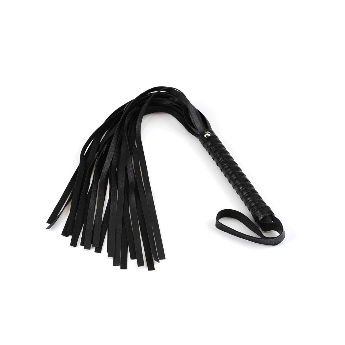 Флогер з екошкіри, з обплетеним руків’ям та петлею для надійного захоплення, впевненого замаху та потужного удару. Флогер — ідеальний девайс для початківців, адже ним можна і гладити, і шльопати і карати. Загальна довжина: 54 см, діаметр ручки 2,1 см.