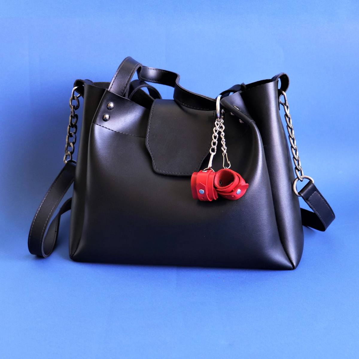 Пропонуємо придбати брелок наручники червоний - зухвалий сувенір, який легко знайде місце на вашій сумці, рюкзаку або ключах! Виготовлений з натуральної шкіри, він повністю повторює справжні наручники.