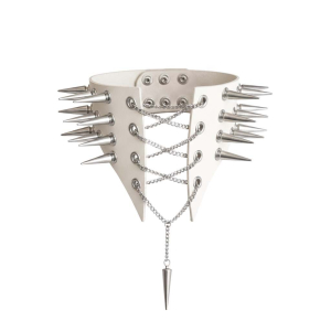 Бічні шипи додають агресії та характеру — це деталь, яка працює з будь-якого ракурсу. Спереду — провокаційна шнурівка на ланцюгах. Переплетення металу створює напруження, посилює драму й притягує погляд до центру композиції. Підвіска додає динаміки — у русі вона вловлює світло та підсилює ефект.