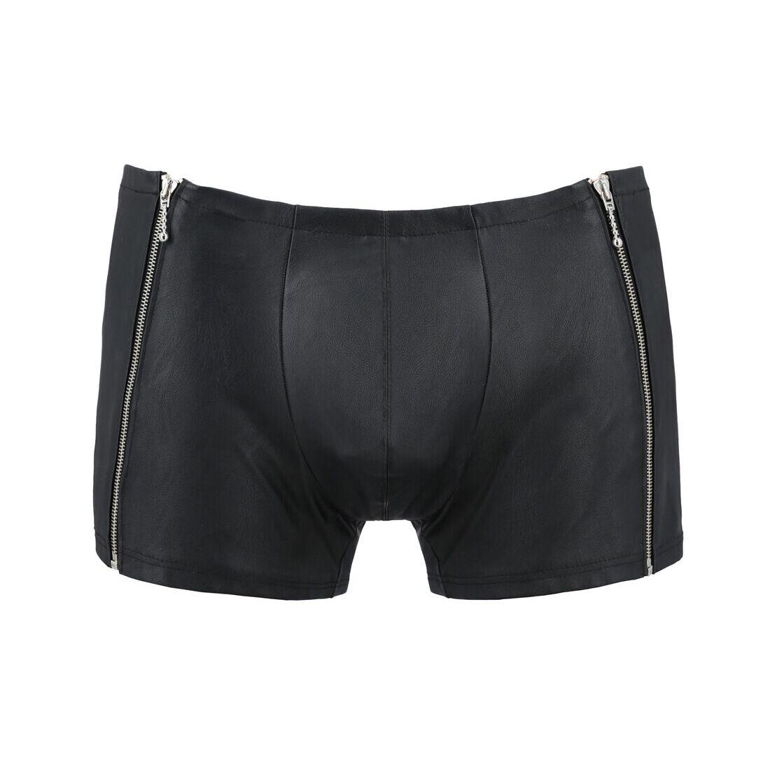 Чоловічі шкіряні боксери з блискавками Passion Short Matt виконані з матової, м’якої на дотик екологічної шкіри й декоровані двома блискавками з боків стегон. Боксери як влиті сидять на тілі, підкреслюючи його переваги та приховуючи недоліки. Підійдуть для вправного спокушання й щоденного носіння, оскільки пошиті з матеріалів високої якості.