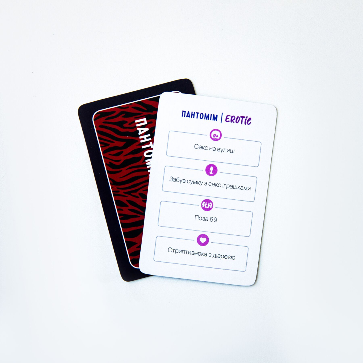 Чудова гра для двох чи для великої веселої компанії - гра з перченим гумором та приправлена здоровим еротизмом. Кожен зможе вибрати завдання по духу та продемонструвати свої акторські здібності та зазирнути у світ сексуальних пригод.