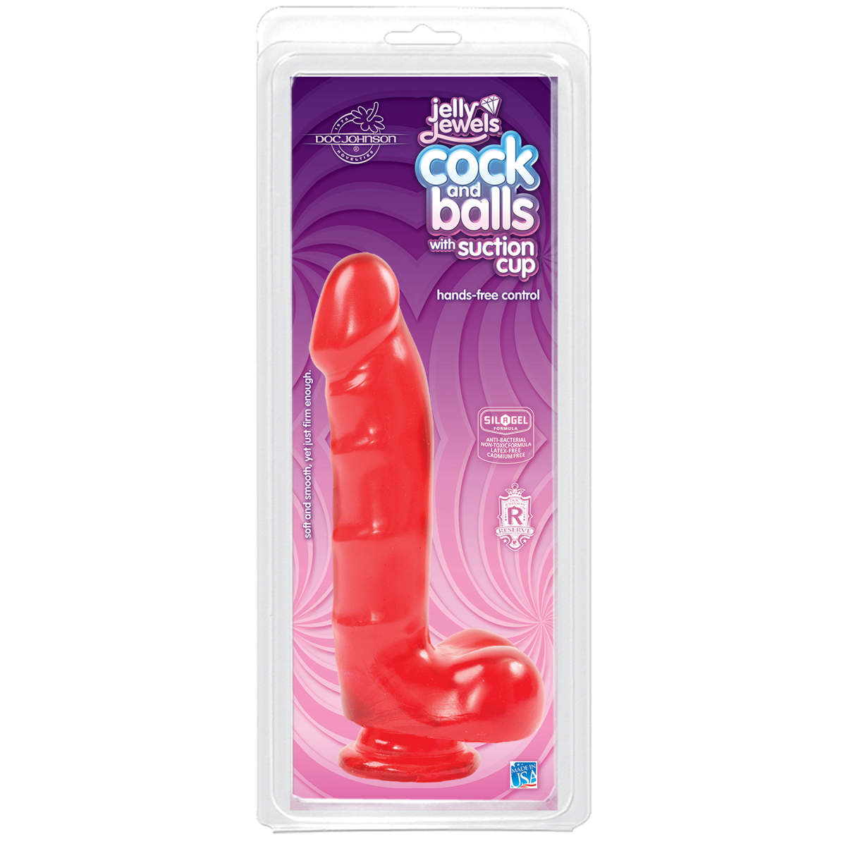 Jelly Jewels Cock and Balls with Suction Cup - неймовірно реалістичний за своєю формою і рельєфом фалоімітатор має зручну присоску, імітацію яєчок і велику круглу голівку. Виконаний з приємного на дотик матеріалу полівінілхлориду з антибактеріальним покриттям Sil-A-Gel. Ніжна гелева поверхня іграшки приголомшливо приємна на дотик. Оптимальні розміри фалоімітатора та присоски, що дозволяє варіювати пози під час мастурбації, зроблять Ваші любовні ігри неймовірно насиченими і різноманітними.