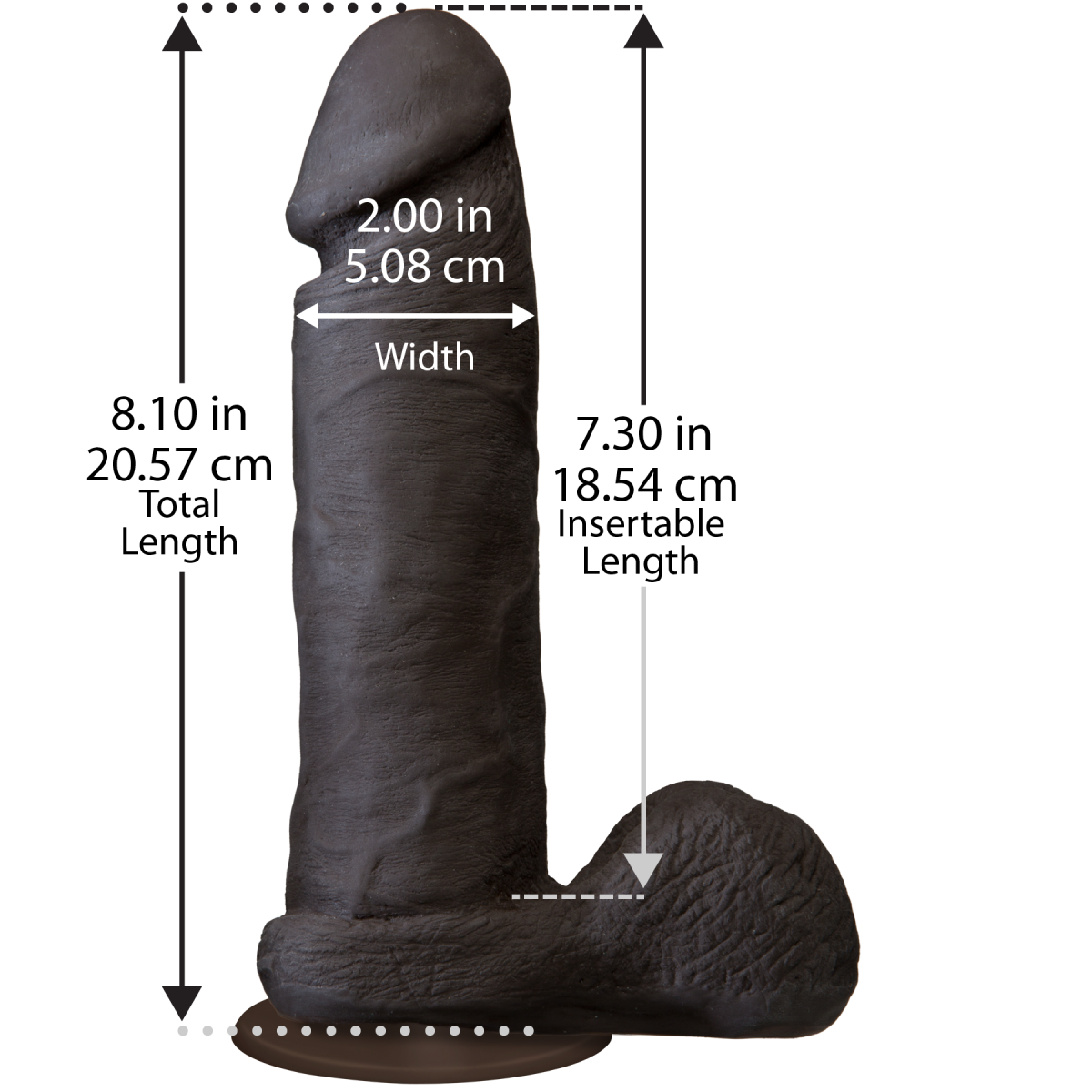 The Realistic Cock 8" має кріплення Vack-U-Lock, за рахунок чого він повністю сумісний з поясами і іншими аксесуарами для страпонів. Даний фалоімітатор має досить значні розміри (загальна довжина 20,5 см, робоча довжина 18,5 см, діаметр 5,1 см), а в комплекті з ним йде знімна присоска з Vack-U-Lock кріпленням.
