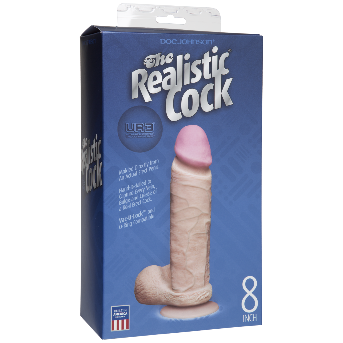 The Realistic Cock 8" має кріплення Vack-U-Lock, за рахунок чого він повністю сумісний з поясами і іншими аксесуарами для страпонів. Даний фалоімітатор має досить значні розміри (загальна довжина 20,5 см, робоча довжина 18,5 см, діаметр 5,1 см), а в комплекті з ним йде знімна присоска з Vack-U-Lock кріпленням.
