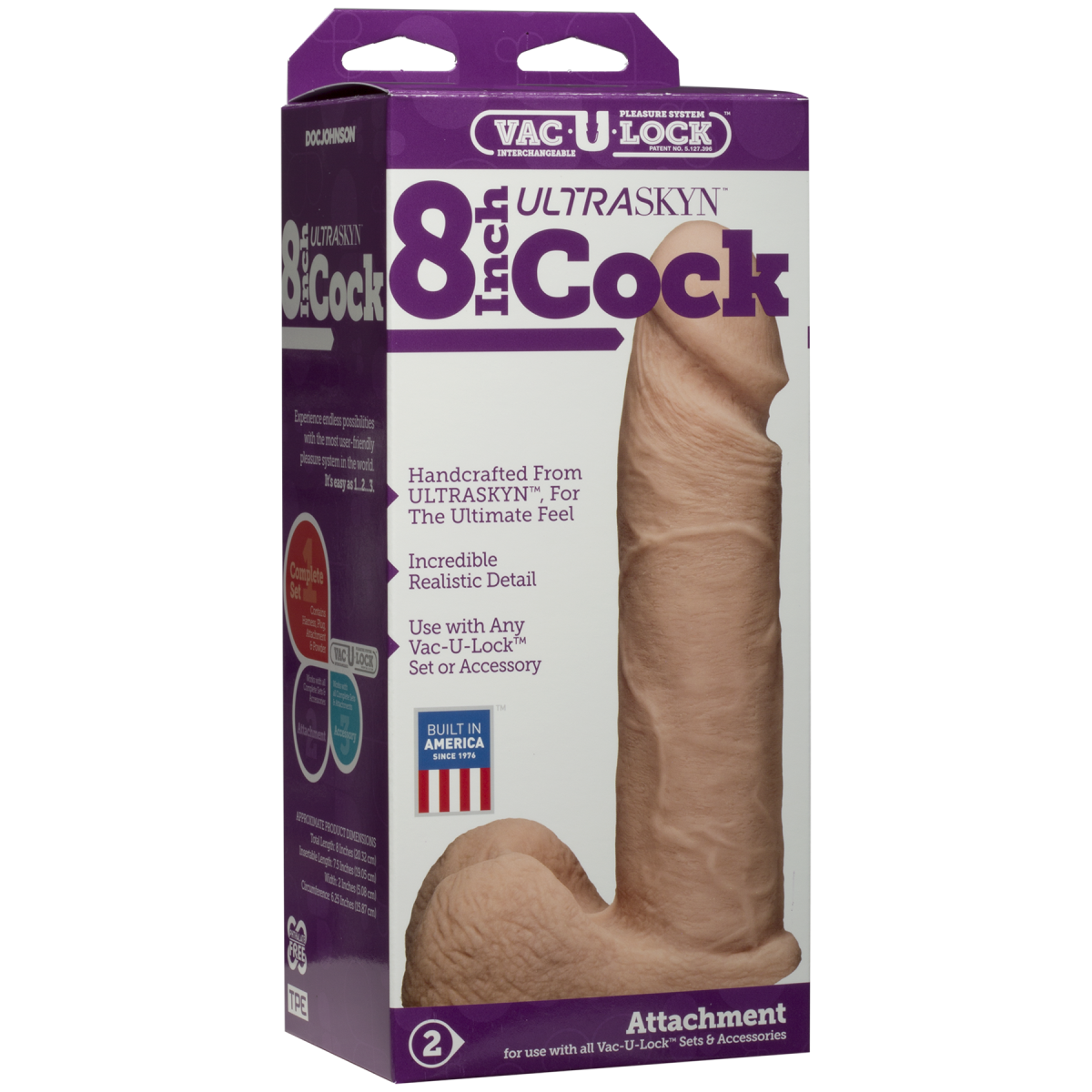 Пропонуємо придбати м'який фалоімітатор Doc Johnson Vac-U-Lock - 8 Inch Ultraskyn Cock White. Ця модель - це анатомічно точна копія справжнього члена, виконана вручну з матеріалу ULTRASKIN. Фалоімітатор Vac-U-Lock 6" має великі розміри (загальна довжина 20,5 см, робоча довжина 18,5 см, діаметр 5,1 см) і за рахунок текстури ULTRASKIN на дотик майже не відрізняється від людської шкіри.
