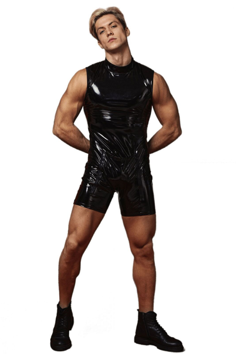 Комбідрес чоловічий лакований «Розпусний Джо» D&A, чорний, L, відкриті сідниці, зручні блискавки