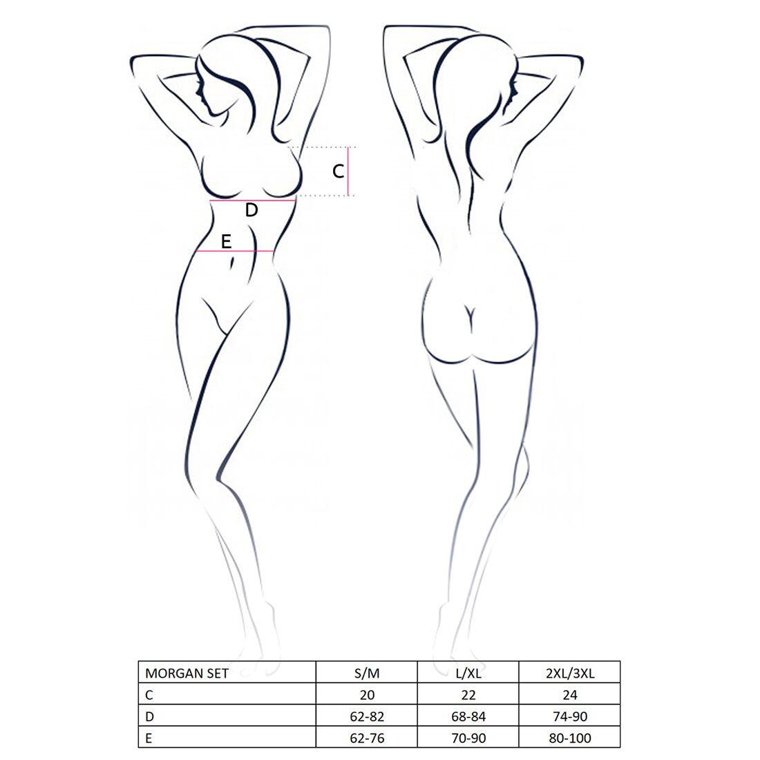 Пропонуємо купити еротичний комплект PASSION MORGAN SET WITH OPEN BRA. Набір повністю складається з тоненьких ремінців, дуже схожий на бретельки від бюстгальтера. Красиво обрамляє жіночий силует, підкреслюючи принади, а недоліки при такій відвертості не будуть помітні. Смужки прикрашені золотою фурнітурою. Ліф додатково регулюється, в такому комплекті ви точно будете почувати себе комфортно. Оригінальний костюмчик припаде до смаку сміливим жінкам, або тим, хто не боїться експериментів. Всі чарівні інтимні зони відкриті, і чоловік неодмінно захоче вас. Костюм можна не знімати під час сексу, так як не обмежує доступ до ерогенних зон. У комплекті ви будете себе відчувати сексуальною і впевненою.