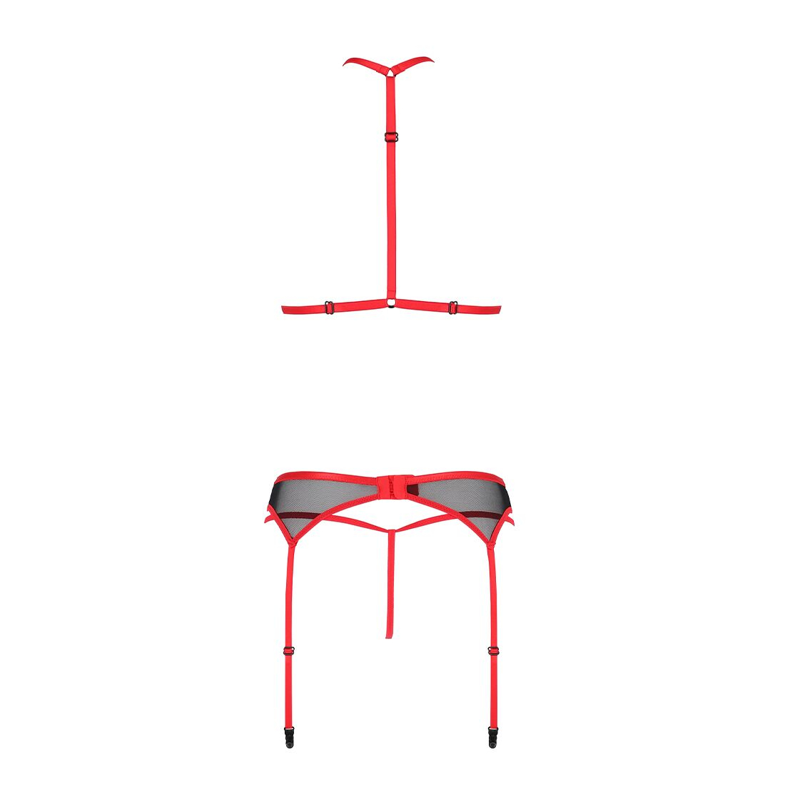 Пропонуємо купити шикарний комплект білизни Passion Satara Set в червоному кольорі. Він витончено підкреслить усі переваги фігури. Прозора тканина обшита червоною облямівкою зі вставками з мережива. Для зручності застібка пояса для панчіх розташована ззаду, а бюстгальтер застібається спереду. Білизна Passion Satara Set у розмірі XXL/XXXL створена для впевнених у собі жінок, які хочуть привернути увагу чоловіків та вигідно показати шикарні форми. У наборі є: