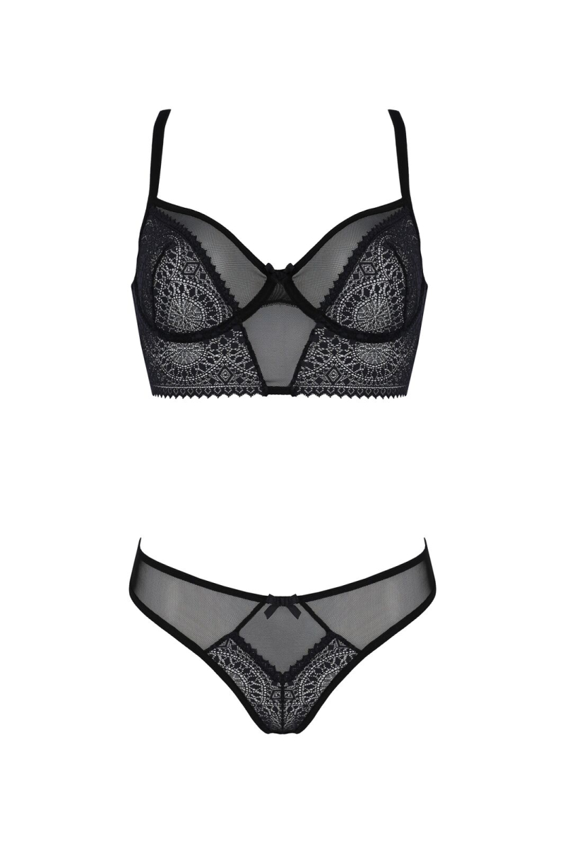 Ви підкреслите жіночні вигини тіла, привернете увагу коханого відвертим вбранням і, звичайно, потішите себе обновкою — ось, що трапиться з вами, якщо купити комплект Passion DROSERA SET. Це бюстьє з комбінованого матеріалу: оксамитового мережива та легкої й приємної для шкіри сітки, а також трусики танга в тон.