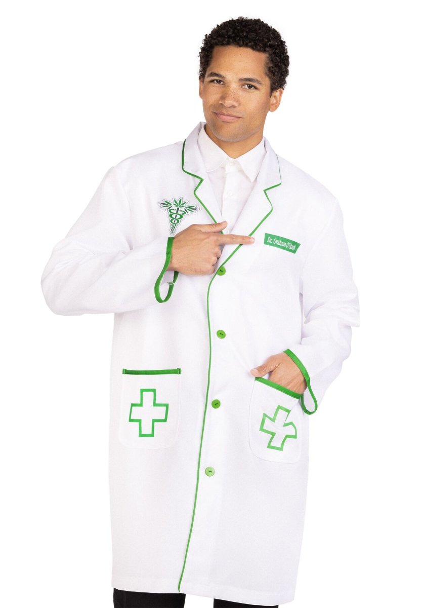 Білий халат із зеленим оздобленням та вишитими зеленими хрестами дає зрозуміти, що перед нами лікар. Але подивіться на емблему: окрім звичних змій охорони здоров’я, там є три листочки конопель. Отже, наш лікар — ніхто інший, як учасник відомого в усьому світі руху «420». Вдень він виступає за легалізацію заборонених інгредієнтів, а вночі готовий веселитися на вечірках із симпатичними медсестричками.