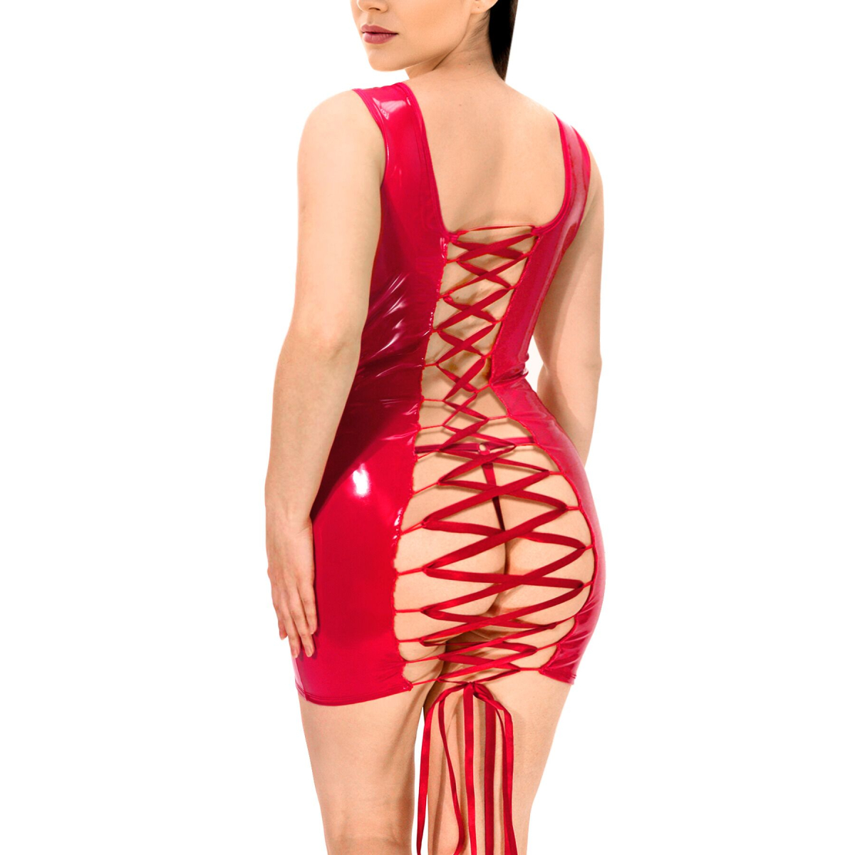 Лакована сукня на шнурівці Art of Sex - Demi, колір червоний, L-2XL - фото