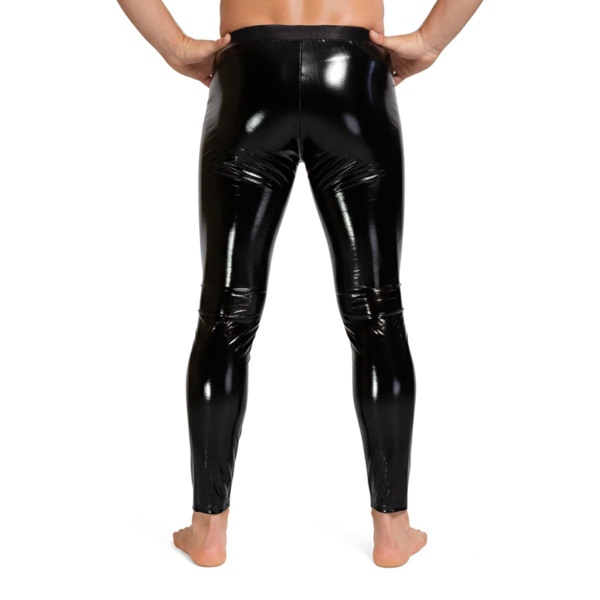 Модель виконана з еластичного вінілу, який щільно облягає тіло й ефектно відбиває світло. Матеріал створює відчуття другої шкіри, підкреслює рельєф і посилює візуальний контраст. У русі тканина виглядає особливо виразно — кожна лінія тіла стає більш чіткою.