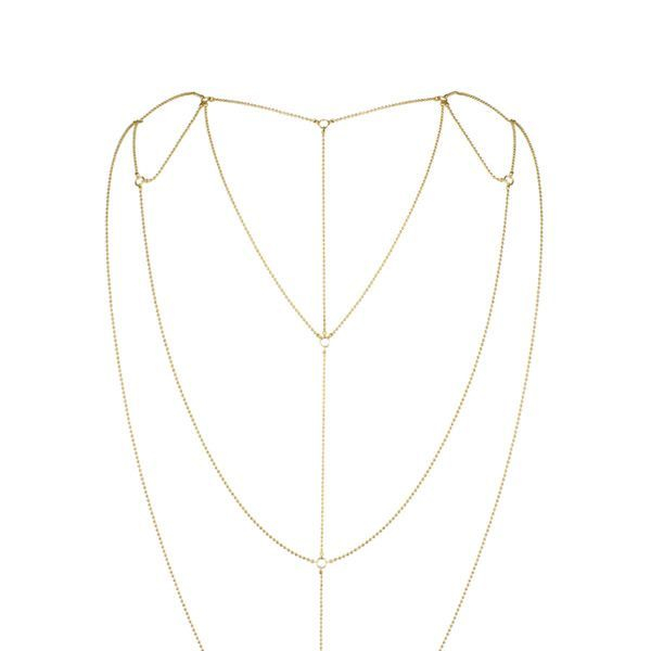 Відкрита спина - це завжди розкішно і спокусливо, проте можливо зробити декольте ще більш прекрасним, якщо купити прикрасу Bijoux Indescrets Magnifique Back and Cleavage Chain - Gold. Витончений ланцюжок з мініатюрних кульок підкреслить красу тіла.