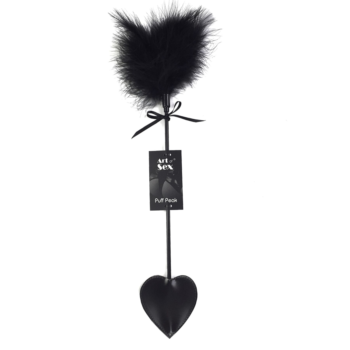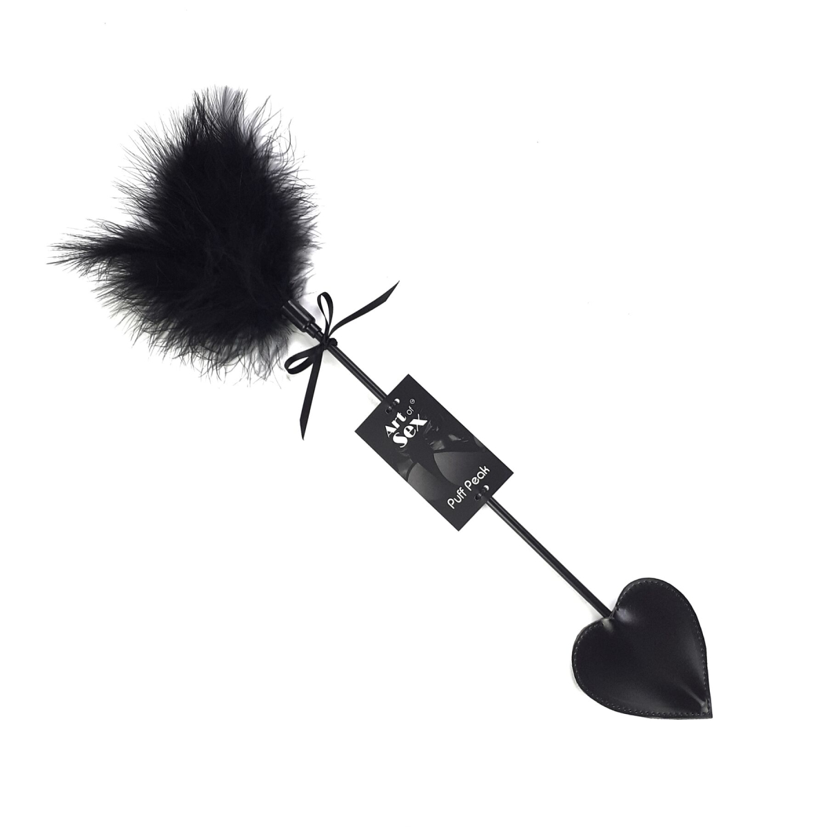 Пропонуємо купити лоскітку зі шльопалкою Піка Art of Sex – Puff Peak. Цей оригінальний аксесуар може стати незамінним атрибутом у солодких прелюдіях та сміливих рольових іграх. Зав’яжіть партнеру очі й пестіть його тіло ніжними дотиками пухових пір’їнок. Протилежний кінець аксесуара — шльопалка у вигляді сердечка — чудове рішення для контрастного застосування з поплескуваннями або більш інтенсивним покаранням. Не залишайте без уваги ерогенні зони коханого й обов’язково слідкуйте за його реакцією — вона не змусить на себе чекати. Чергування відчуттів та збудження, пов’язане із цим, — ось, чого варто очікувати під час використання цієї милої дрібнички.