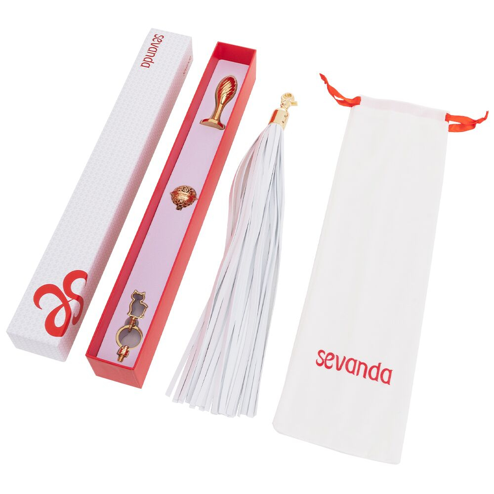 - Металева анальна пробка Хвіст поні LOCKINK SEVANDA White Pony-Tail Anal Pear-shape Plug