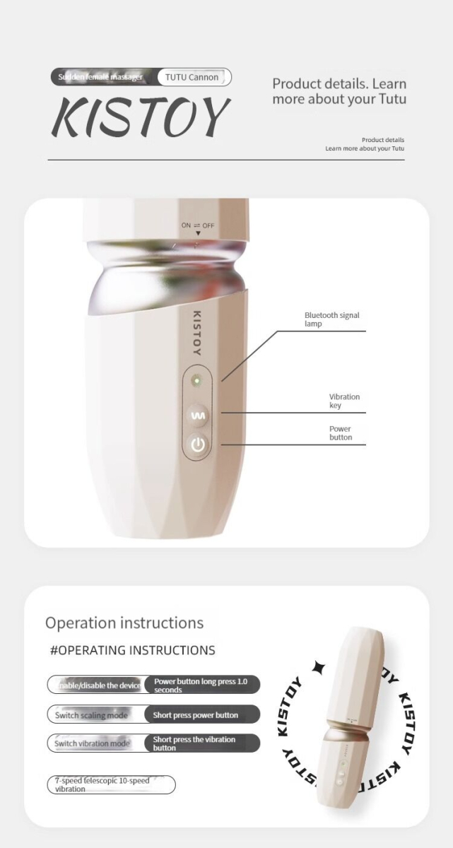 Справжня секс-машина в мініатюрі, водночас компактна, неймовірно мила й ніжна — те, що обов’язково потрібно кожній жінці! Якщо ви цінуєте комфорт, великий вибір режимів роботи та зовнішню естетику, рекомендуємо купити міні секс-машину KISTOY Tutu на присосці. На перший погляд, це ергономічний кейс, проте всередині ховається пульсатор-вібратор, який працює в 7 режимах пульсації та в 10 режимах вібрації. Крім того, пульсатор автоматично підігрівається до 38–42 °C, що робить його використання максимально комфортним. Машину можна тримати в руках (її маса 473 г дає змогу легко це робити в багатьох випадках), а також надійно кріпити до будь-якої гладенької поверхні за допомогою присоски (у комплекті). Іграшка повністю водонепроникна, що відкриває величезні можливості для ігор у ванні та душі.