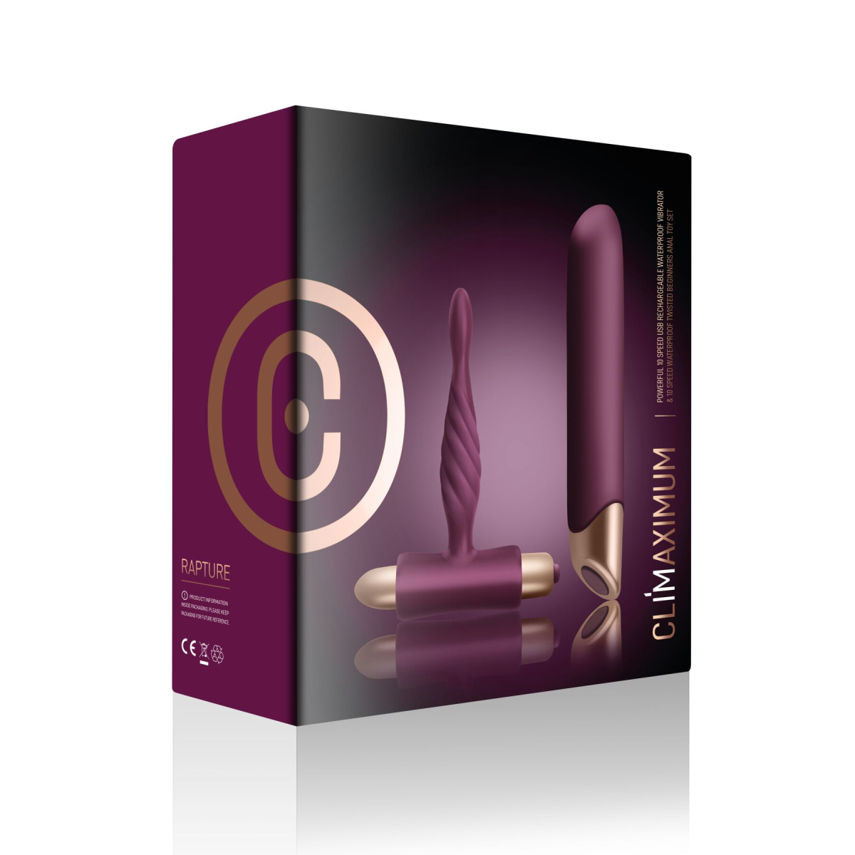Експериментуйте з відчуттями та проникненням! Пропонуємо купити набір вібраторів Climaximum Rapture, у якому є акуратна анальна пробка та класичний гладенький вібратор. З цим набором можна грати самостійно, поєднуючи анальне та вагінальне проникнення, насолоджуватися додатковою стимуляцією в парі або використовувати вібратор для стимуляції зовнішніх ерогенних зон. Обидві іграшки працюють у 10 режимах. Вібратор перезаряджуваний, анальна пробка працює від батарейки ААА (у комплекті). Віброкуля з анальної пробки знімна, завдяки чому ви отримуєте по суті відразу три іграшки! Іграшки повністю водонепроникні.