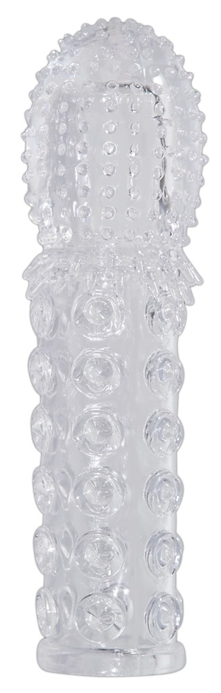 Насадка і презерватив для подовження чоловічого статевого органу в одному. З ніжними шипами та рельєфом. Розмір 15 см, подовження чоловічого органу на 4 см, наконечник діаметром 35 см, еластичний.