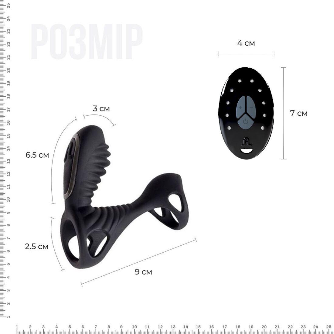 Управління ерекційним кільцем Gladiator відбувається за допомогою бездротового пульта управління LRS зі зручним перемиканням режимів вібрації і візуальним відображенням поточного режиму на рідкокристалічному екрані.
