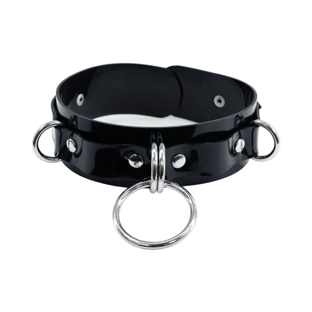 Представляємо вашій увазі чокер Feral Fillings в чорному кольорі — ідеальний вибір для використання в ролі стильного нашийника. Цей унікальний аксесуар виконаний з інноваційного ПВХ-матеріалу без фталатів, який не тільки безпечний для шкіри, але й має блиск, що нагадує лаковану шкіру або латекс. Матеріал легко очищається, стійкий до води та приємний на дотик. Дизайн чокера поєднує в собі широкий подвійний ремінь, що елегантно обрамляє шию, і надійно закріплене металеве кільце, що ідеально підходить для кріплення повідця. Такий аксесуар стане чудовим доповненням до вашої БДСМ-колекції. Чокер-нашийник оснащений двома D-подібними кільцями для фіксації наручників або інших БДСМ-аксесуарів. Він має елегантний вигляд на жіночій шиї, підкреслюючи витонченість та сміливість образу. Виготовлений із якісного матеріалу з фурнітурою сріблястого кольору, що додає виробу особливого шарму. Чокер кріпиться за допомогою пряжки ззаду та легко регулюється за обсягом шиї, завдяки чому підходить практично всім. Ширина нашийника становить 4 см, забезпечуючи комфортне та естетично приємне носіння.