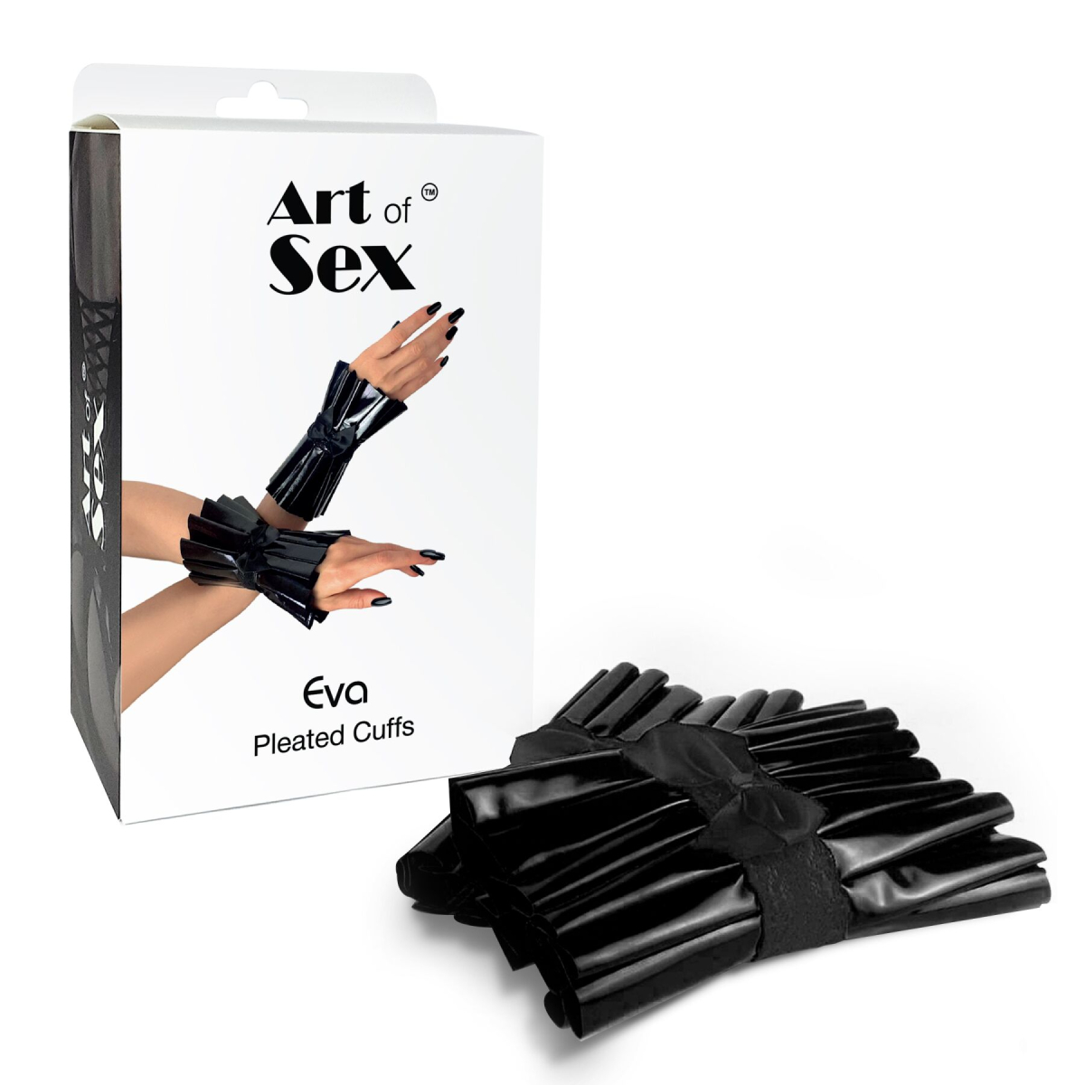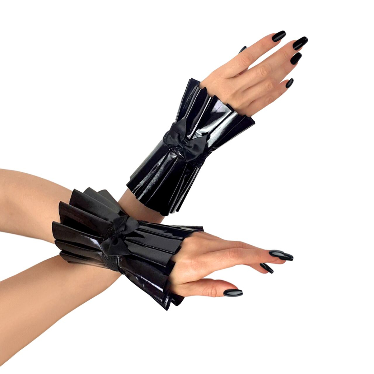 Плісовані вінілові манжети Art of Sex - Eva – оригінальне доповнення для образів у готичному стилі та рольових костюмів. Завдяки незвичайним аксесуарам Ваш образ буде виглядати більш цілісним та автентичним.