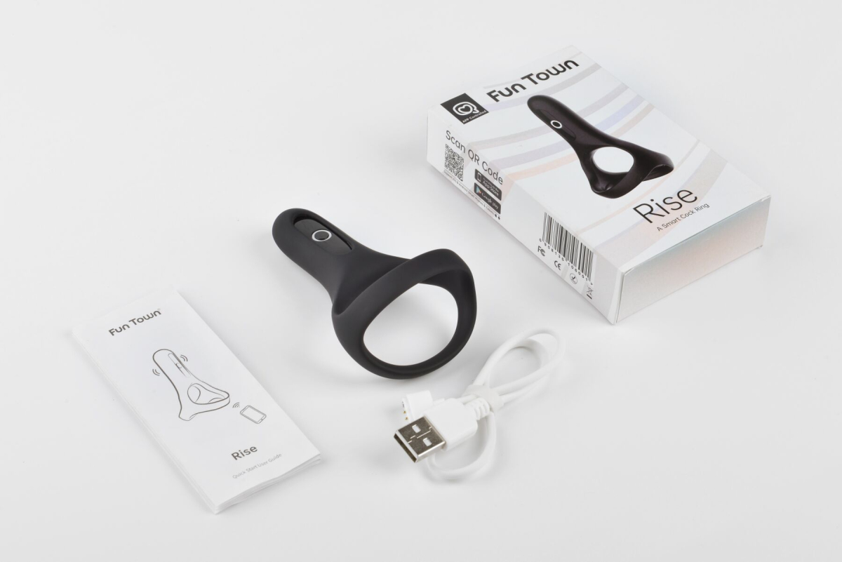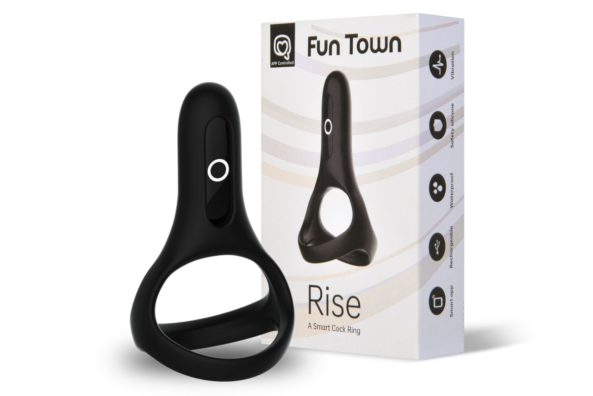 Еластичне подвійне ерекційне кільце Fun Town Rise Black щільно охоплює член і мошонку, завдяки чому обмежується відтік крові, ерекція посилюється, а час статевого акту збільшується. Різноманітні хвилі вібрацій потужного віброелементу інтенсивно стимулюють пеніс і впливають на клітор, доводячи обох учасників до запаморочливих оргазмів. Знімний вібропатрон з АБС-пластику можна використовувати як у кільці, так і для стимуляції клітора, сосків, промежини та інших ерогенних зон під час прелюдій.