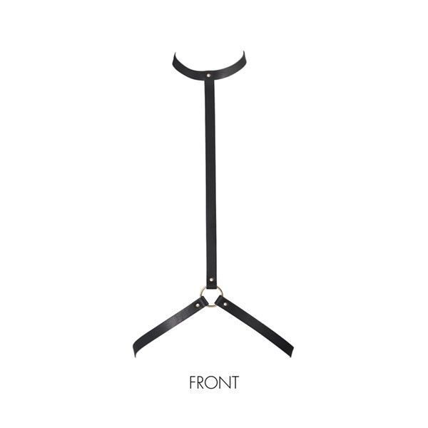 Ця модель портупеї поєднує у собі сексуальність і лаконічність, легкий флер БДСМ і вивірену стильність. Чокер спокусливо охоплює шию, а ремені підкреслюють жіночність форм. Портупея щільна, з поліуретану, що нагадує шкіру. Ремені регулюються по довжині, тому лягають м'яко, ніде не передавлюває тіло.