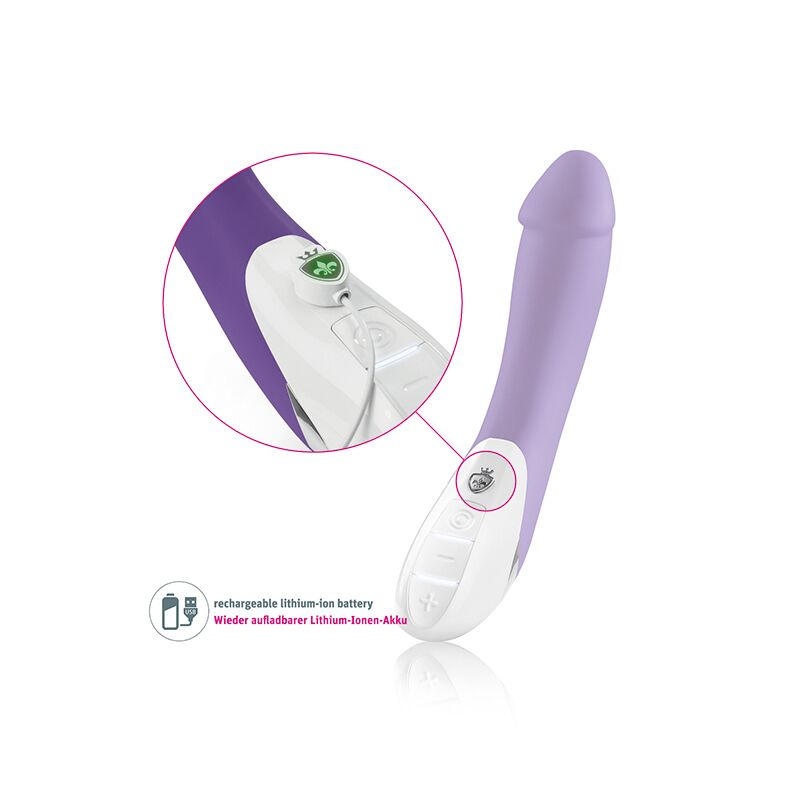 Вібратор перезаряджається, працює від літій-іонної батареї. В комплекті - магнітний USB-кабель для підзарядки (увага! Заряджайте тільки від USB-порту комп'ютера або ноутбука, не від розетки!).