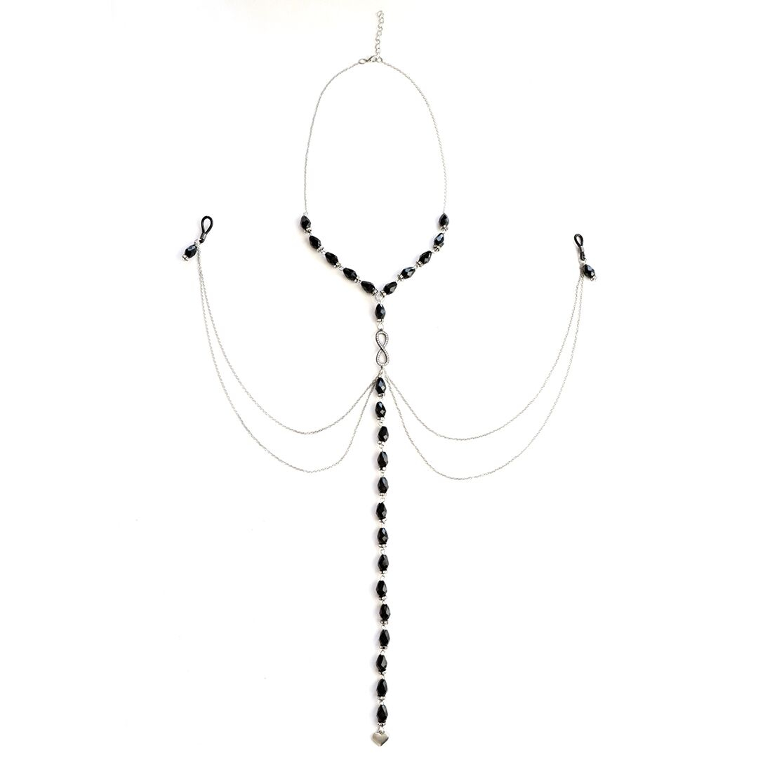 Незвичайна інтимна прикраса Art of Sex - Night mood, що поєднує в собі розкішну красу кристалів і витонченість тонких металевих ланцюжків. Прикраса кріпиться на сосках за допомогою силіконових петельок, тим самим унеможливлюючи будь-який дискомфорт і травматизм ніжної зони. Ця прикраса для сосків стане прекрасним доповненням до відвертих комплектів спідньої білизни, рольових костюмів або витончених суконь з глибоким декольте.