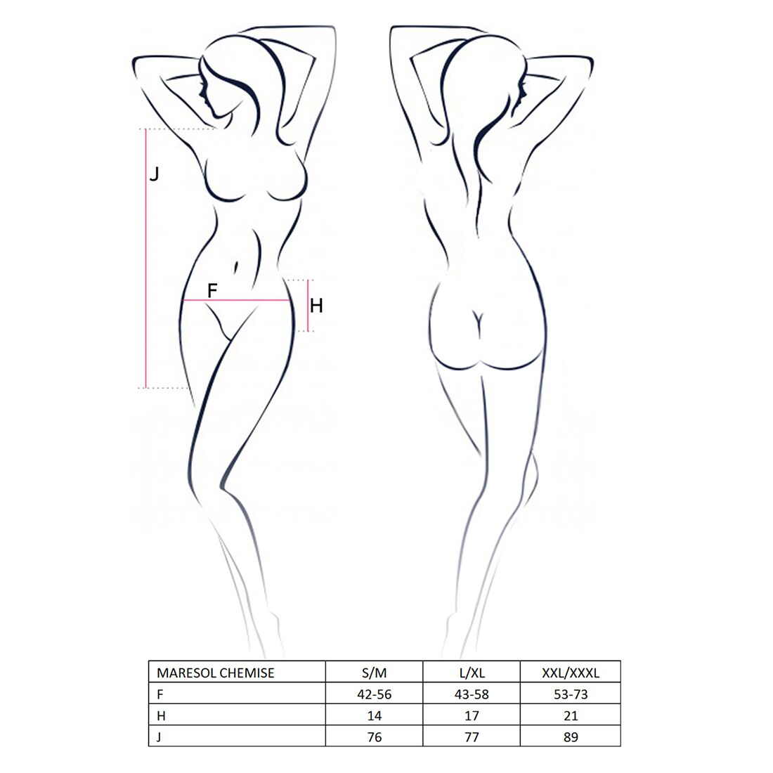 Войовничий і простий бебі-дол Passion Erotic Line MARESOL CHEMISE, немов спокуслива броня сексуальної амазонки, вражає ціль з першого погляду! Білизна виконана у варіанті боді з відкритими солодкими грудьми і перехопленнями під ліфом.
