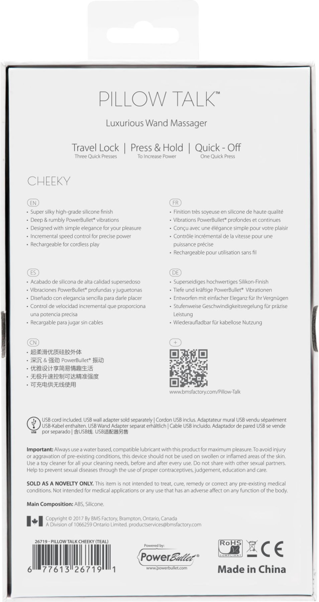 Якщо ви цінуєте задоволення і красу, вам точно необхідно купити розкішний вібромасажер Pillow Talk - Cheeky Teal з кристалом Swarovski. Це не просто красивий лакшері-гаджет, але і нескінченне джерело насолоди з унікальним інтелектуальним керуванням. Просто затисніть кнопку, і піднесіться на вершини блаженства з усе наростаючою вібрацією - або відпустіть її для рівномірного впливу. Гнучка голівка і зручна рукоятка роблять використання вібромасажера максимально комфортним.