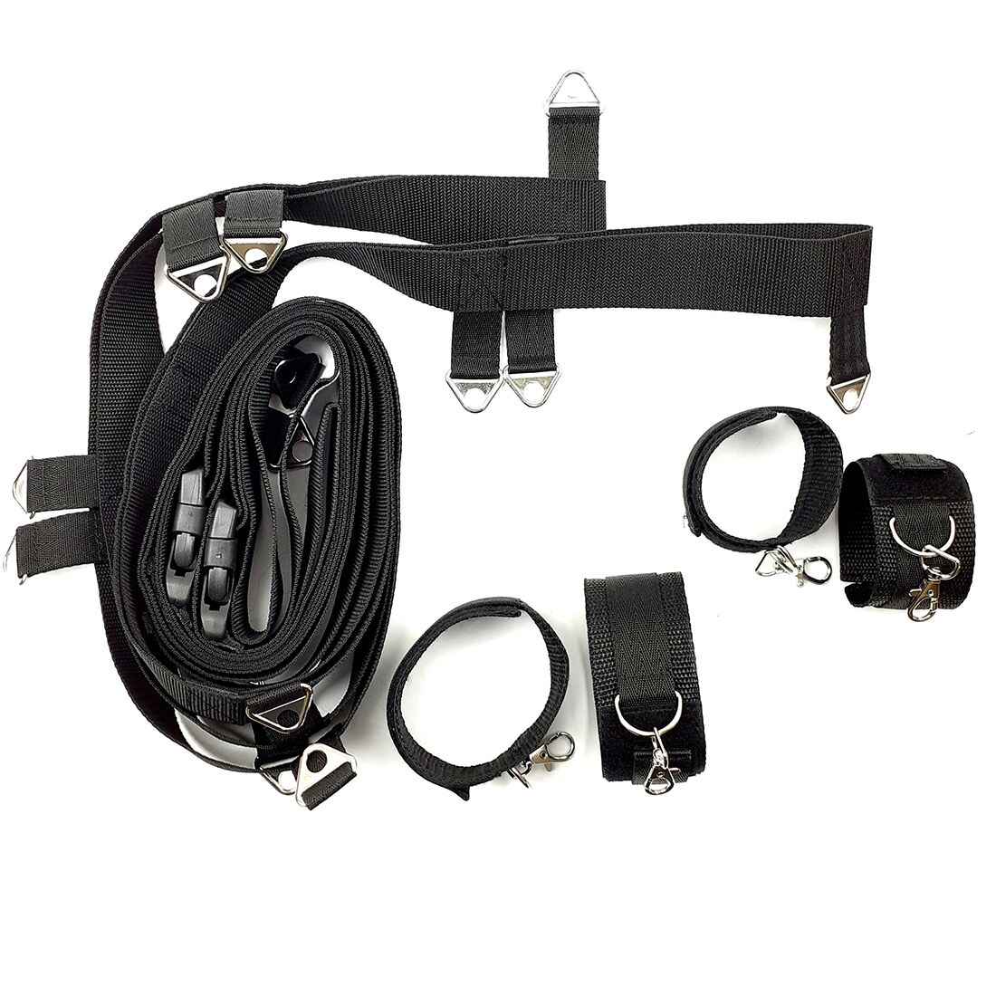 Розтяжка являє собою набір із широких ременів з кільцями та двох пар регульованих наручників, які кріпляться до кілець. Ремені надягаються на матрац, а до зап’ясть і щиколоток партнера кріпляться наручники. Поворухнутися неможливо, єдина рухлива частина тіла, доступна прив’язаному партнеру, — голова. Ротом можна робити все, що забажає ваш Домінант. Для більш якісного прожарювання рекомендуємо перевернути партнера на живіт і знову пристебнути до розтяжки.
