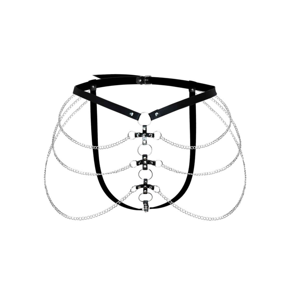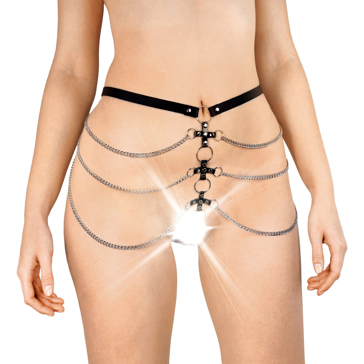 Ці незвичайні трусики призначені для тих, хто шукає спосіб приємно вразити свого партнера, доповнити рольовий костюм або створити відвертий провокативний образ для гарячих ігор в спальні. Металеві ланцюжки створюють чарівний акцент, підсилюючи загальний сексуальний вигляд, особливо, коли рухаються в такт з соковитими жіночими стегнами. Завдяки цим жіночим трусикам ви додасте нових приємних емоцій у ваше інтимне життя.