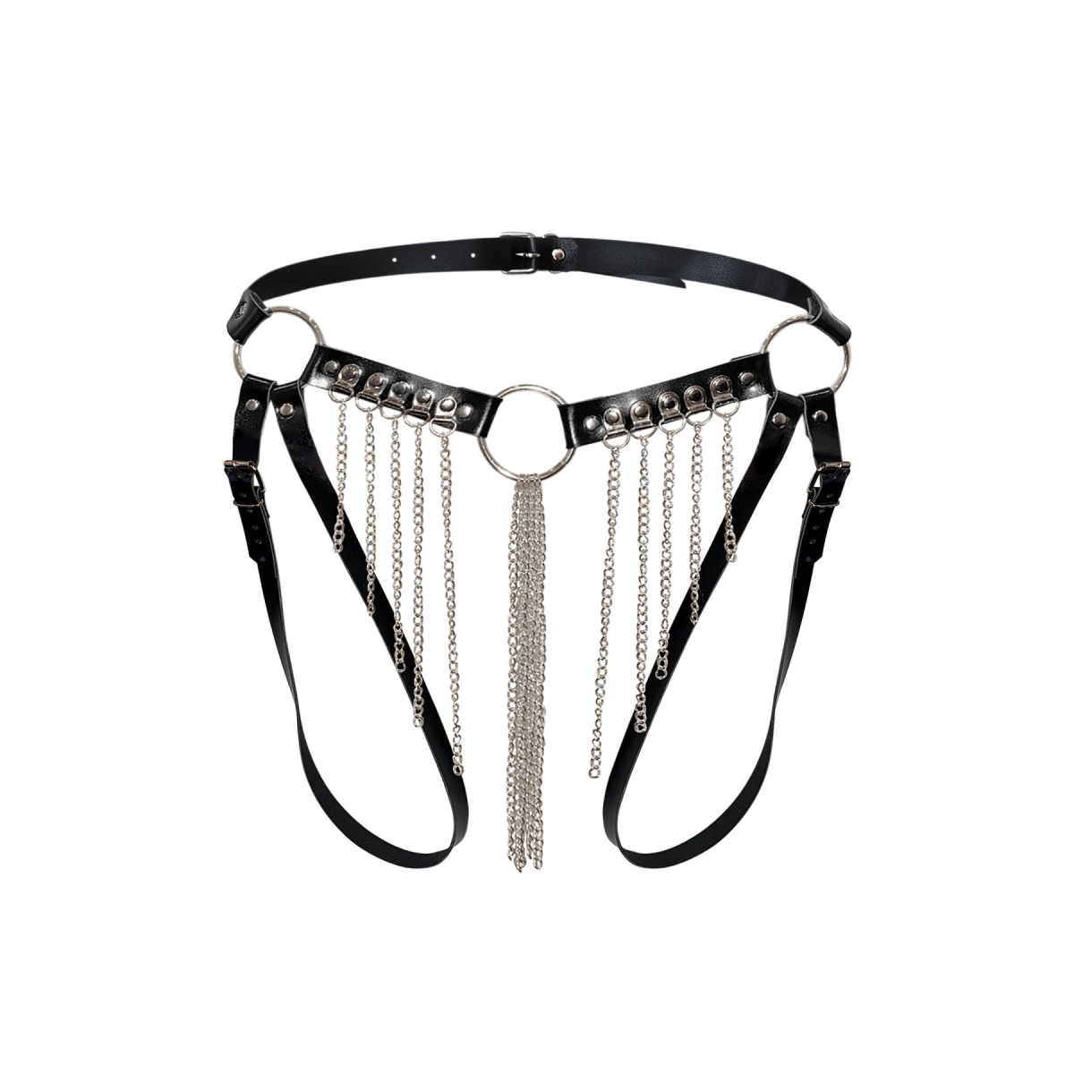 Гартери - трусики з ланцюжками Art of Sex - Xena - це вишуканий і спокусливий елемент білизни, створений для тих, хто цінує стиль і чуттєвість у світі інтимної моди. Ці трусики-гартери з натуральної шкіри забезпечують ідеальне поєднання елегантності та провокації, підкреслюючи вашу жіночність і додаючи гостроти у ваші інтимні стосунки.