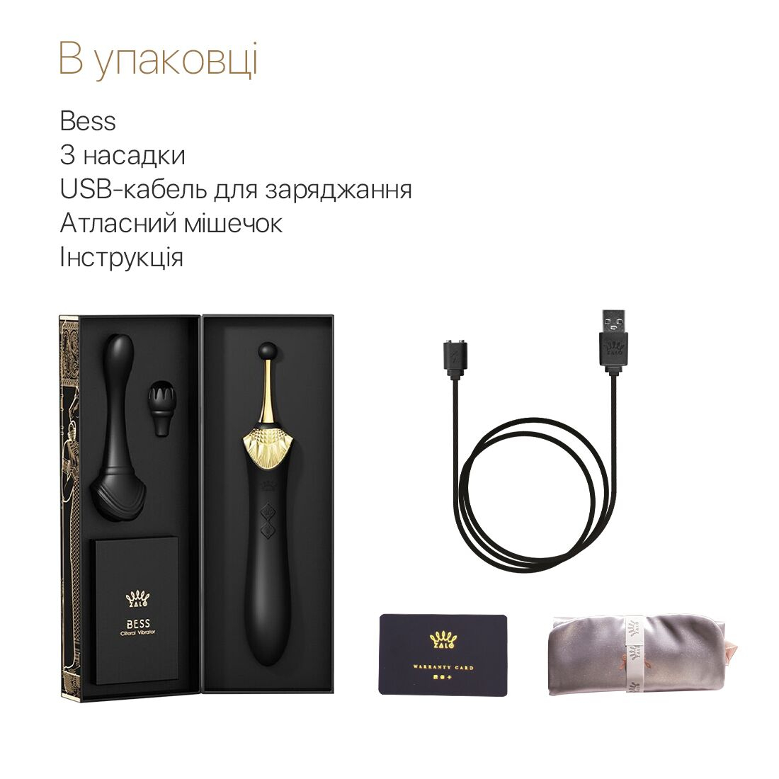 Вагінально-кліторальний вібратор Zalo — Bess Obsidian Black, мультифункціональний із насадками