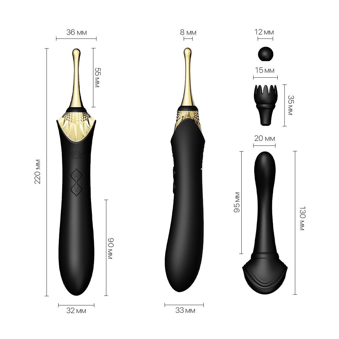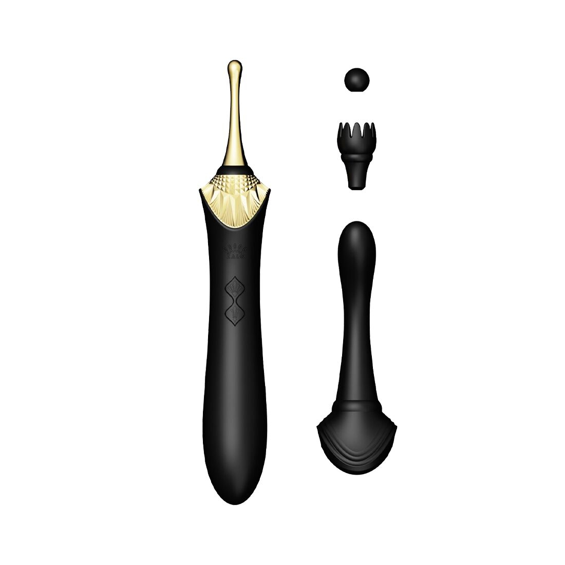 Вагінально-кліторальний вібратор Zalo — Bess Obsidian Black, мультифункціональний із насадками - фото