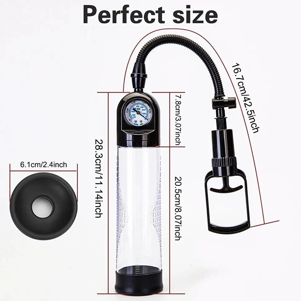 Якщо ви хочете не тільки збільшити пеніс, але й підвищити чутливість і зробити ерекцію більш потужною, рекомендуємо купити вакуумну помпу Men Powerup зі стрілковим манометром і ручним насосом. Це ефективний пристрій, який забезпечує потужний приплив крові до пеніса і, як наслідок, збільшення його розміру і стійку ерекцію. Помпа універсального розміру (колба 20,5×6,1 см), оснащена стрілковим манометром для точного контролю тиску, ручним насосом для простого використання та лінійкою для відстеження прогресу.