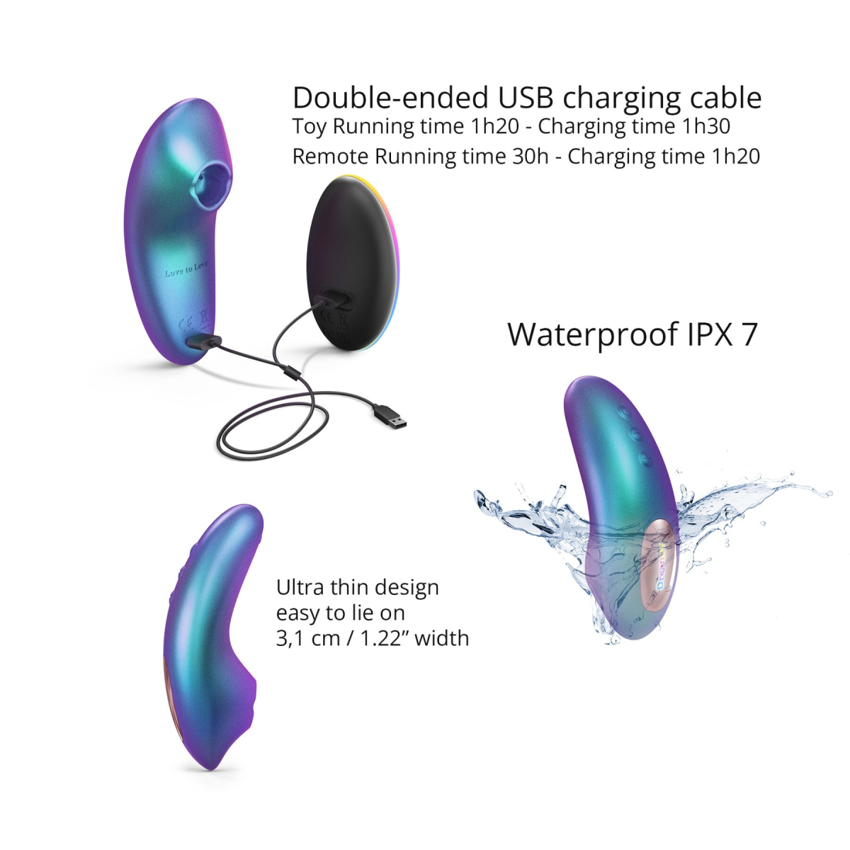Вакуумний кліторальний стимулятор Love To Love DREAMER – IRIDESCENT TURQUOISE, пестощі язичком,пульт - фото