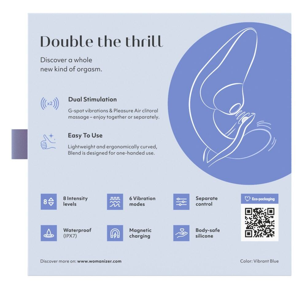 - Вакуумний кліторальний стимулятор Womanizer Blend Vibrant Blue