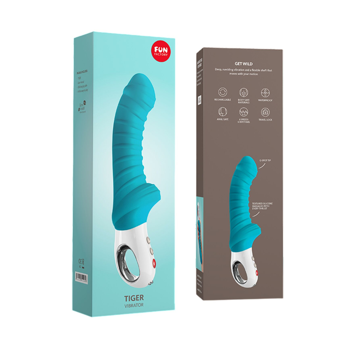 Якщо ви хочете відчути всередині щось більше ніж звичайний гладенький вібратор, рекомендуємо купити вібратор для точки G Fun Factory TIGER. Його ребриста поверхня створює незвичайні хвилеподібні відчуття під час кожного руху вібратора, а спеціальний виступ-стопер дає можливість використовувати його навіть для анальної стимуляції. Гнучкий стовбур комфортно розміщується всередині, а вигнутий кінчик точно потрапляє на точку G (або простату під час анального використання). Мотор працює в 6 режимах і на 6 швидкостях, створюючи глибокі вібрації. Вібратор водостійкий