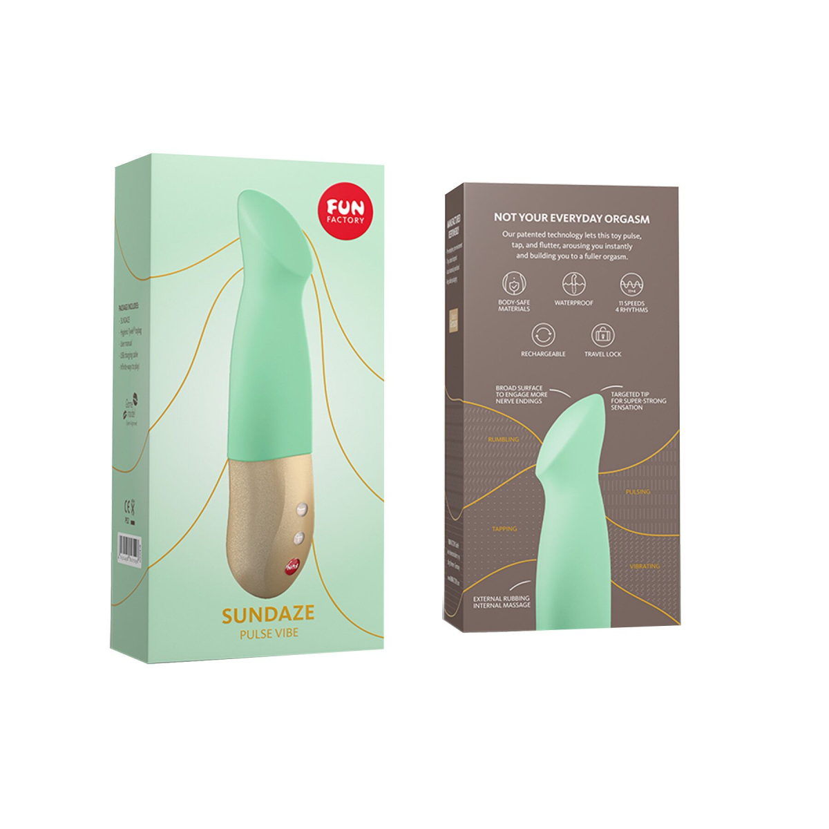 Вібратор-пульсатор Fun Factory SUNDAZE, на відміну від звичних вібраторів, стимулює три типи нервових закінчень одночасно, впливаючи на них за допомогою вібрації та зворотно-поступальних рухів різної інтенсивності та ритму. Єдине, що потрібно вам зробити, — це розслабитися та налаштуватися на задоволення, решту вібратор-пульсатор зробить сам!