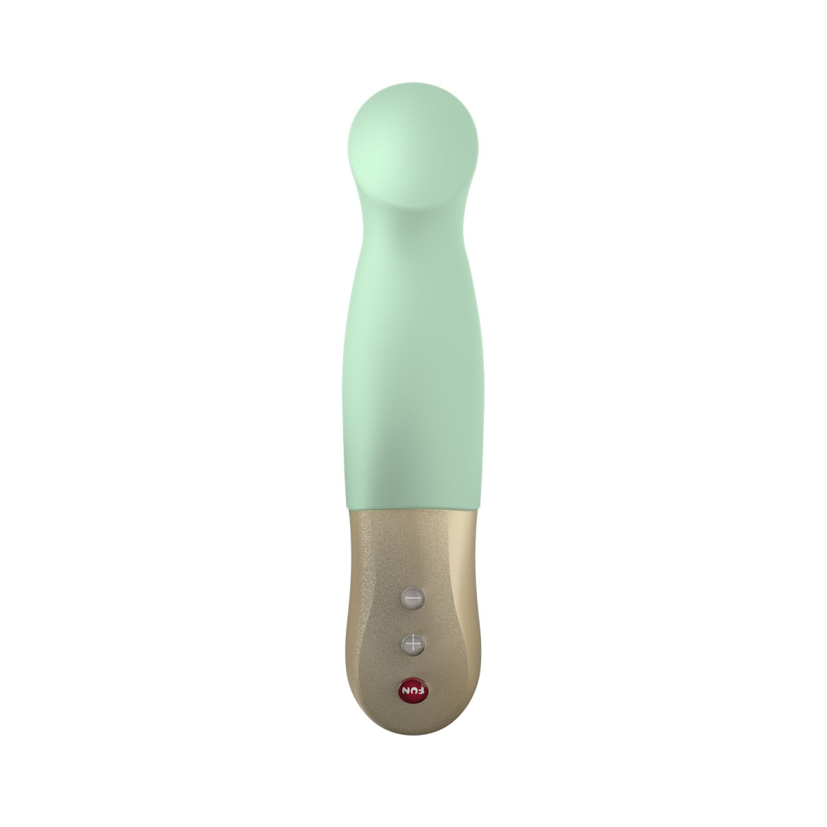 Пропонуємо купити вібратор-пульсатор Fun Factory SUNDAZE, що працює за унікальною технологією Pulse Vibe. У ньому поєднані вібрації та пульсації різної інтенсивності та ритму у такий спосіб, щоб одночасно стимулювати три типи нервових закінчень. На вас чекають глибокі та об’ємні оргазми, які змусять тремтіти все тіло! 10 режимів роботи та 4 різні ритми поєднують у собі різноманітні типи впливу для максимального задоволення. Спеціальний плоский майданчик на кінчику прекрасно стимулює точку G і підходить для зовнішньої стимуляції клітора. Цей простий на перший погляд вібратор підійме ваше задоволення на новий рівень! Іграшка водонепроникна.