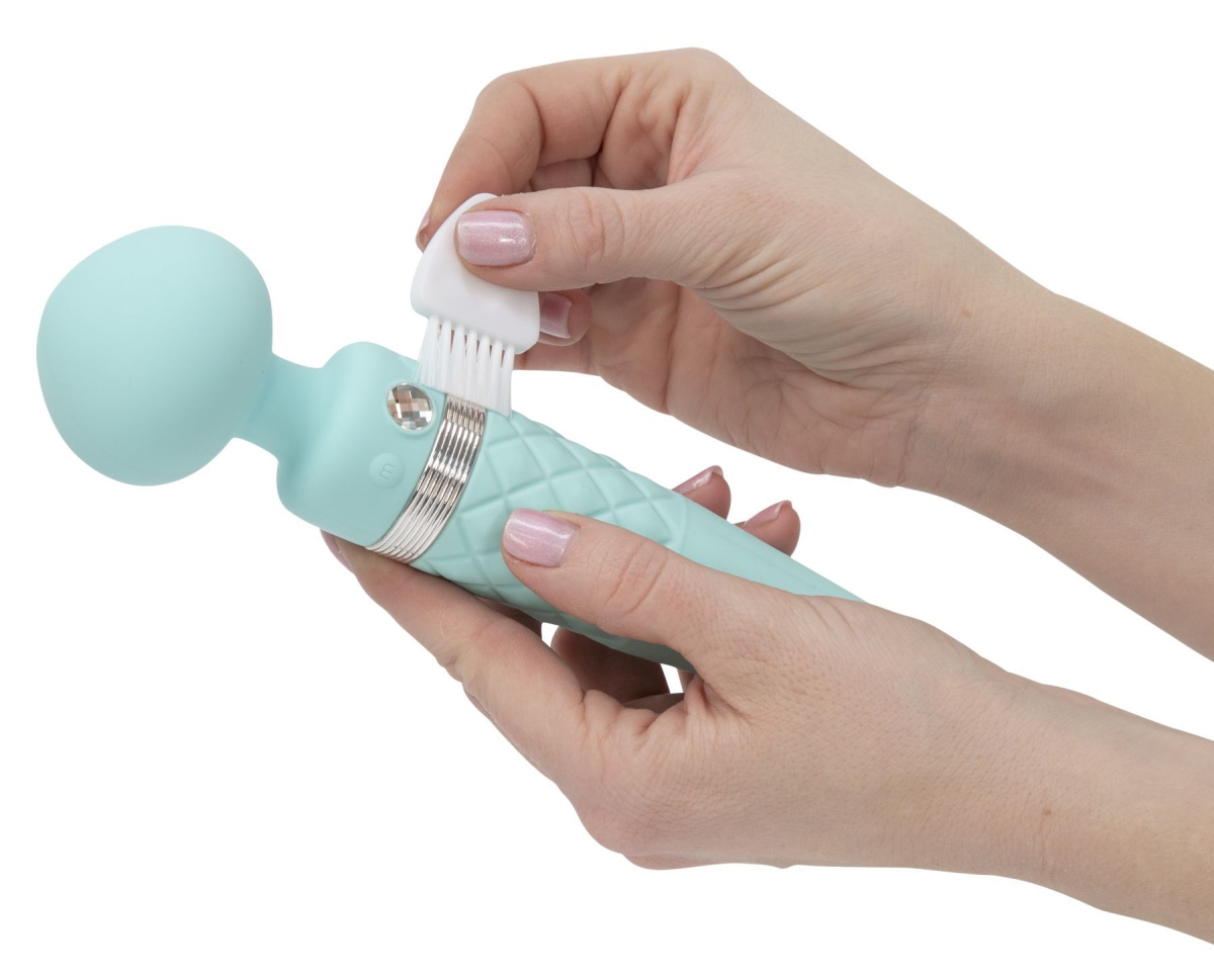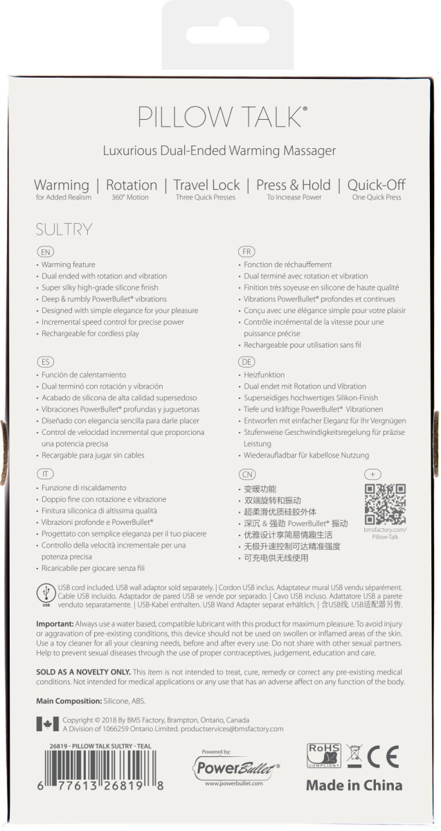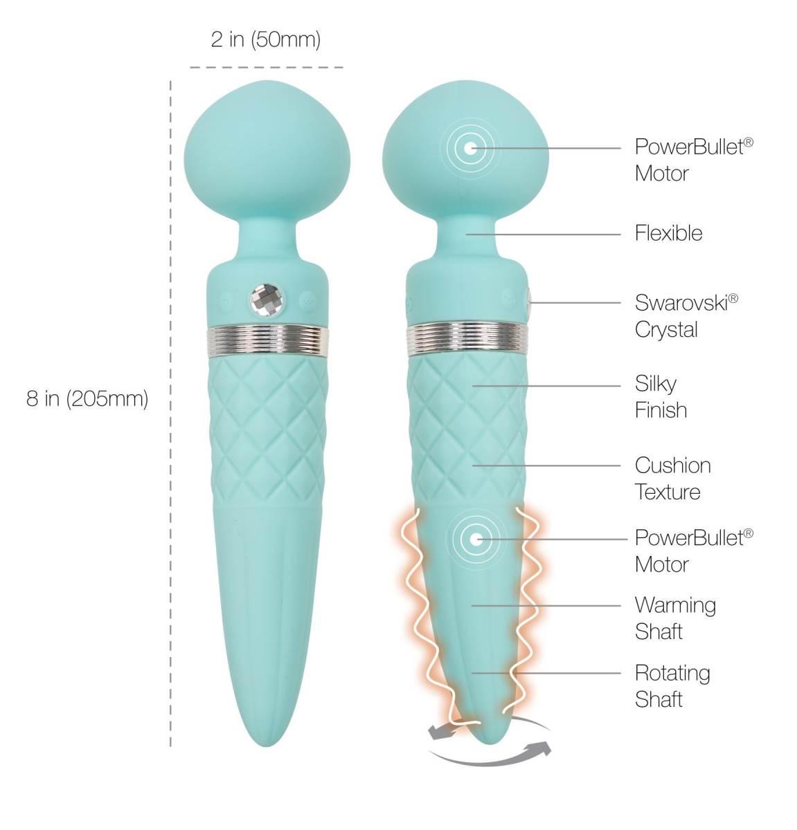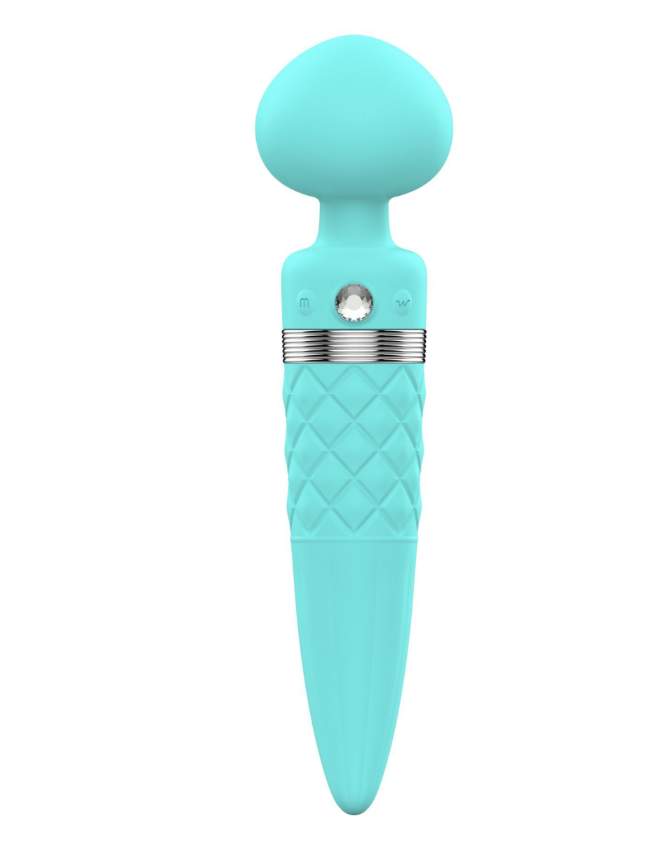 Пропонуємо купити вібромасажер PILLOW TALK - Sultry Teal - розкішний масажер поліпшеної форми з функцією нагріву і гарною прикрасою - справжнім кристалом Swarovski. Елегантний дизайн, зручне керування і подвійне використання (вібрація голівки + ротація ручки) - цей вібромасажер створений для найвищого задоволення.
