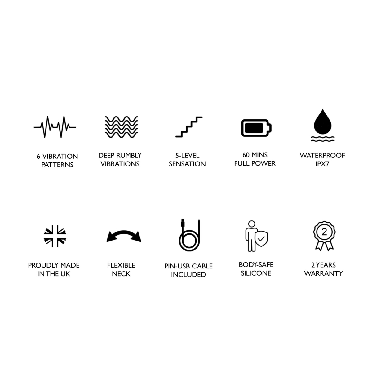 гнучке кріплення головки дає змогу масажувати або стимулювати будь-які зони та точки, навіть важкодоступні;