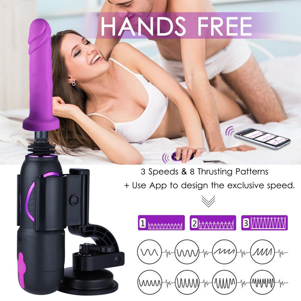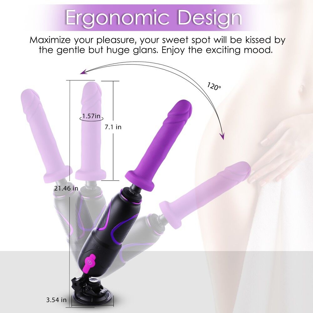 - невисокий рівень шуму — 38–56 дБ; у комплекті — фіолетовий силіконовий фалоімітатор, пружний і приємний на дотик. Загальна довжина 18 см, робоча довжина 16 см, діаметр 3,5 см. Можна одразу братися до тестування секс-машини, без додаткових купівель аксесуарів! Рекомендуємо відразу придбати лубрикант на водній основі;