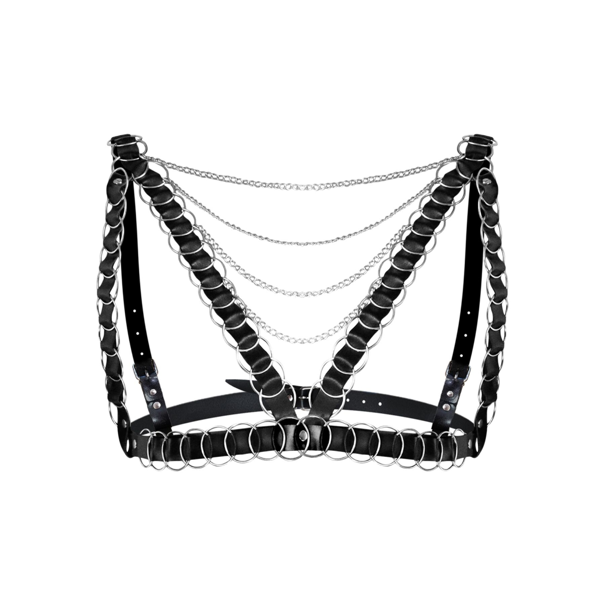 Шкіряна жіноча портупея з кілець Art of Sex - Geneva - це не тільки функціональний аксесуар, а й стильне доповнення до вашого образу. Ця жіноча портупея являє собою вишукане поєднання елегантності та сміливості, даючи змогу висловити свою індивідуальність або просто спробувати щось нове і незвичайне. Портупея прикрашена металевими ланцюжками і виглядає одночасно жіночно та сексуально.