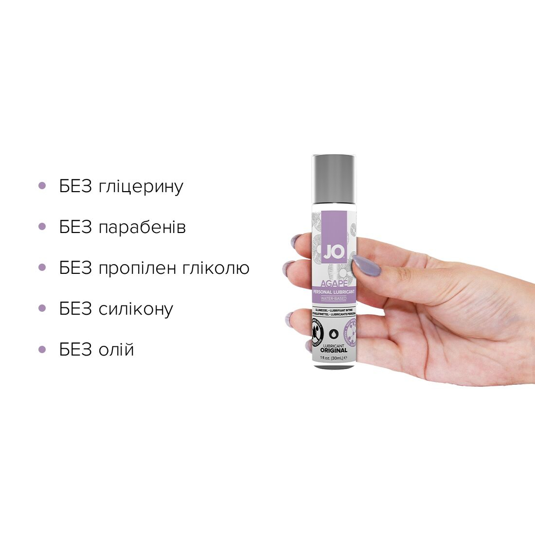 Змазка на водній основі JO AGAPE — ORIGINAL — це інтимний лубрикант, створений задля імітування природної жіночої змазки. Ця нова та вдосконалена формула на водній основі не містить гліцерину, гліколю та парабенів; ідеально підходить для людей, які керуються складом засобу під час його купівлі. Плюс до всього неймовірно легка консистенція забезпечує ніжне ковзання, таке ж гладеньке як шовк. Ви маєте спробувати цей засіб!